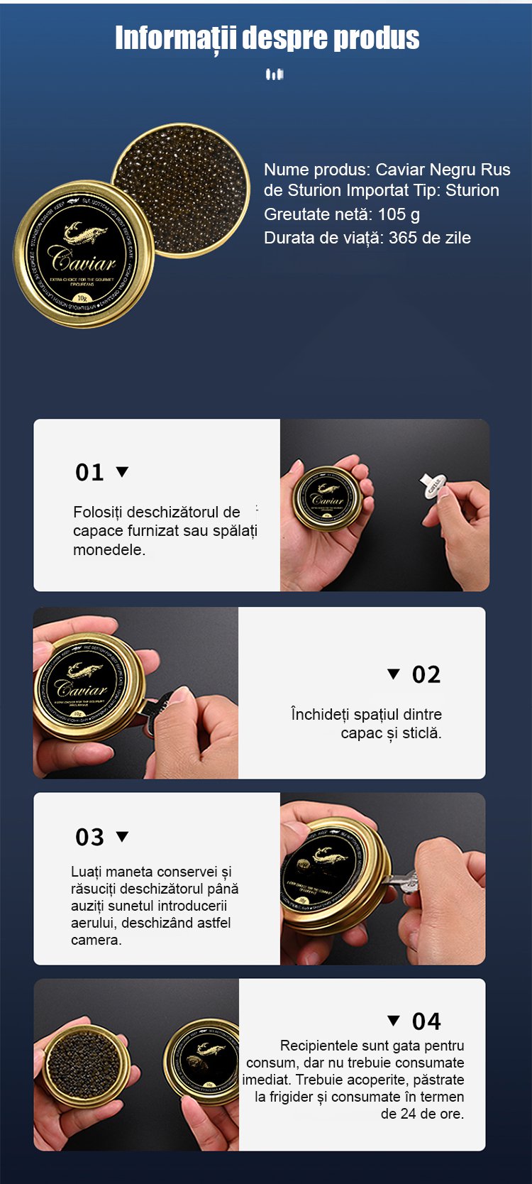 Caviar negru de sturion importat din Marea Caspică